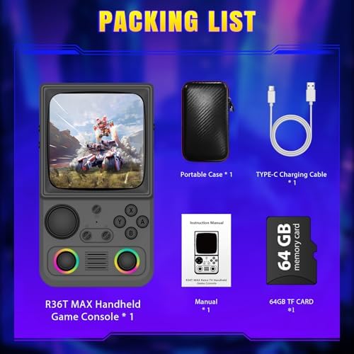 Extensive Retro Game Collection – R36TMAXT retro handheld game console features a versatile entertainment system that supports over 23 classic game emulators. It comes with a 64GB memory card preloaded with a wide variety of timeless titles, offering hours of nostalgic gameplay right from the start.